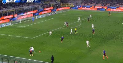 第45分钟,皮奥禁区头球破门,国米连追三球3-2反超比萨